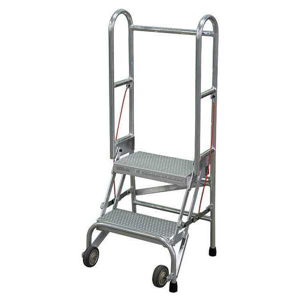 Rolling Ladder, 2 Steps, Ribbed TreadSKU G104390349Categories Antislip Tapes, Treads & Stair Nosings , Material HandlingDescription Rolling Ladder, Material Aluminum, Platform Height 20 in, Handrails Included Yes, Handrail Height 32 in, Overall Height 52 in, Number of Steps 2, Assembled, Load Capacity 350 lb, Step Tread Ribbed, Platform Depth 14 in, Platform Width 24 in, Bottom Width 29 in, Base Depth 23 in, Overall Width 29 in, Climbing Angle 56 Degrees , Step Depth 7 in, Step Width 24 in, Ladder Actuation Spring-Loaded Casters, Finish Aluminum Mill, Color Aluminum, Standards ANSI, OSHA, Includes Crutch TipsgraingerSKU: 29RK12, mscSKU: , zoro_no: G104390349, mongo_id: 65bbe98022d7a989a995e50d