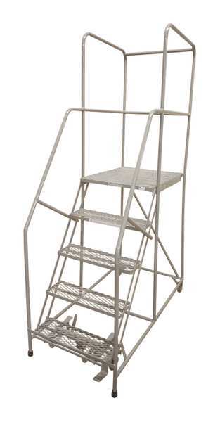80 in H Steel Rolling Ladder, 5 StepsSKU G0998098Categories Material HandlingDescription Rolling Ladder, Material Steel, Platform Height 50 in, Handrails Included Yes, Handrail Height 30 in, Overall Height 80 in, Number of Steps 5, Unassembled, Load Capacity 450 lb, Step Tread Expanded Metal, Platform Depth 30 in, Platform Width 24 in, Bottom Width 30 in, Base Depth 84 in, Overall Width 30 in, Climbing Angle 59 Degrees , Step Depth 7 in, Step Width 24 in, Ladder Actuation Foot Activated Step Lock, Finish Powder Coated, Color Gray, Standards ANSI, OSHA, Rear Exit NograingerSKU: 21UW21, mscSKU: , zoro_no: G0998098, mongo_id: 65bbe9a522d7a989a996cc5c