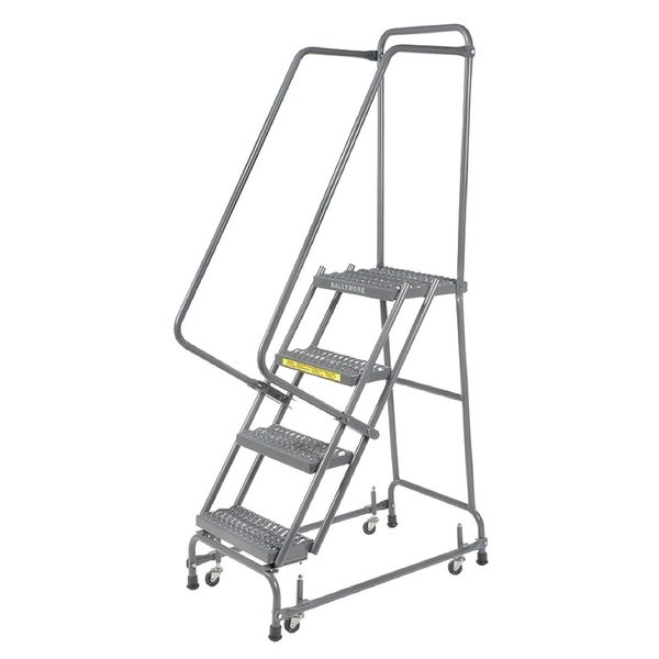 70 in H Steel Rolling Ladder, 4 StepsSKU G0996619Categories Material HandlingDescription Rolling Ladder, Material Steel, Platform Height 40 in, Handrails Included Yes, Handrail Height 30 in, Overall Height 70 in, Number of Steps 4, Assembled, Load Capacity 450 lb, Step Tread Serrated, Platform Depth 10 in, Platform Width 30 in, Bottom Width 32 in, Base Depth 31 in, Overall Width 32 in, Climbing Angle 59 Degrees , Step Depth 7 in, Step Width 30 in, Ladder Actuation Foot Activated Step Lock, Finish Powder Coated, Color Gray, Standards ANSI, OSHA, Rear Exit NograingerSKU: 21UR10, mscSKU: , zoro_no: G0996619, mongo_id: 65bbe9a522d7a989a996cc3b