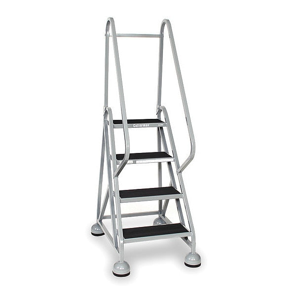 SKU G9826862Categories Material HandlingDescription Rolling Ladder, Material Steel, Platform Height 36 in, Handrails Included Yes, Handrail Height 30 in, Overall Height 66 in, Number of Steps 4, Unassembled, Load Capacity 450 lb, Step Tread Antislip Vinyl, Platform Depth 8 in, Platform Width 16 in, Bottom Width 25 in, Base Depth 34 in, Overall Width 25 in, Climbing Angle 59 Degrees , Step Depth 8 in, Step Width 16 in, Ladder Actuation Weight Activated Step Lock, Finish Powder Coated, Color Gray, Standards ANSI, OSHA, Includes Double HandrailsgraingerSKU: 1TGY3, mscSKU: , zoro_no: G9826862, mongo_id: 65bbe9a522d7a989a996cc5b