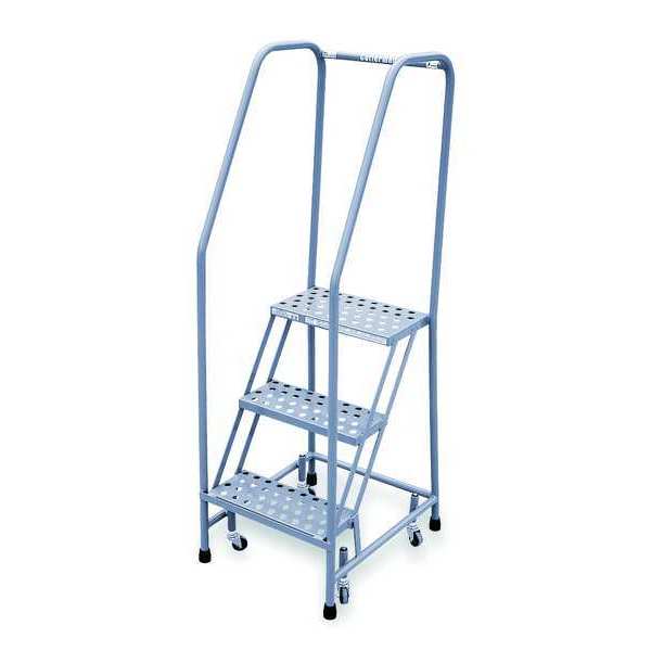SKU G6730132Categories Material HandlingDescription Rolling Ladder, Material Steel, Platform Height 30 in, Handrails Included Yes, Handrail Height 30 in, Overall Height 60 in, Number of Steps 3, Assembled, Load Capacity 450 lb, Step Tread Perforated, Platform Depth 10 in, Platform Width 16 in, Bottom Width 20 in, Base Depth 26 in, Overall Width 20 in, Climbing Angle 59 Degrees , Step Depth 7 in, Step Width 16 in, Ladder Actuation Weight Activated Step Lock, Finish Powder Coated, Color Gray, Standards ANSI, OSHA, Rear Exit NograingerSKU: 3UY12, mscSKU: , zoro_no: G6730132, mongo_id: 65bbe9a522d7a989a996cc4a