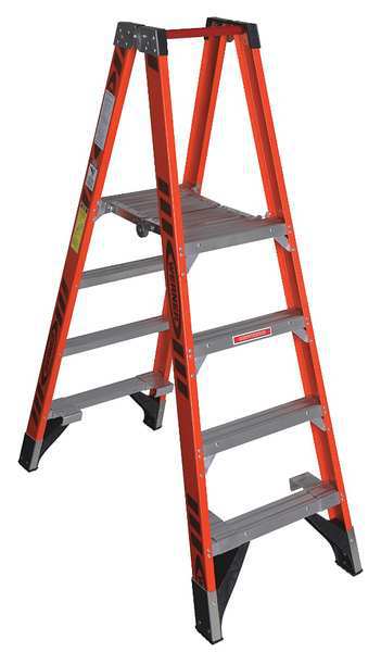SKU G4553096Categories Material HandlingDescription Twin Platform Stepladder, Ladder Height 6 ft, Platform Width 13 in, Platform Depth 22 in, Platform Height 4 ft, Load Capacity 300 lb, Bottom Width 25 in, Base Spread 50 in, Material Fiberglass, Series PT7400, Number of Steps 4, Step Depth 3 in, Step Tread Ribbed, Rung/Step Spacing 12 in, ANSI Type IA, Includes EDGE Bracing with External Rail Shields, Pinch-Proof Platform, Safety Guard Rail, Standards ANSI, Net Weight 30 lbgraingerSKU: 34E337, mscSKU: , zoro_no: G4553096, mongo_id: 65bbe9a522d7a989a996cbf9