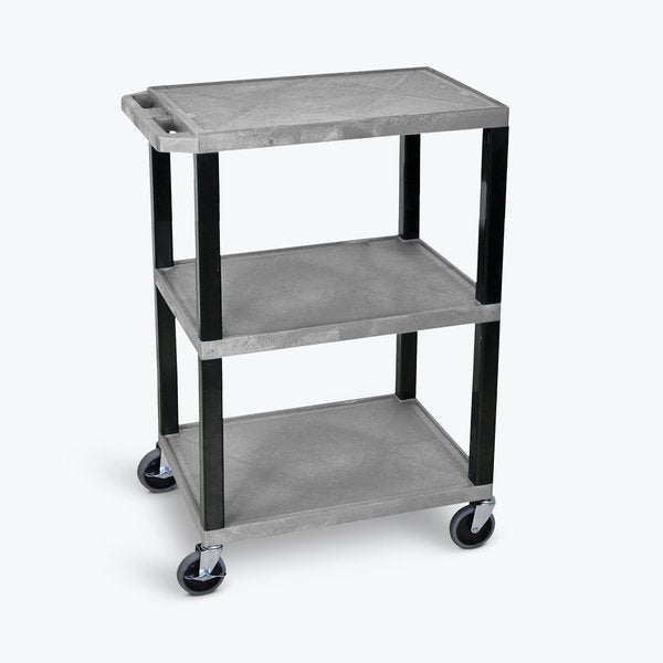 SKU G3204302Categories Material HandlingDescription Utility Cart with Deep Lipped Plastic Shelves, Number of Shelves 3, Lip Style 4-Sided Lipped, Load Capacity 400 lb, Shelf Length 39 1/2 in, Shelf Width 27 in, Top Shelf Height 33 1/4 in, Distance Between Shelves 11 in, Distance Between Top and Middle Shelf 11 in, Distance Between Middle and Bottom Shelf 11 in, Handle Type Raised, Handle Height 35 1/2 in, Caster Brake Type No Brake Included, Caster Wheel/Tread Material Thermoplastic Rubber, Caster Wheel Dia. 4 ingraingerSKU: 2XJR8, mscSKU: , zoro_no: G3204302, mongo_id: 65bbe95522d7a989a994cc7f