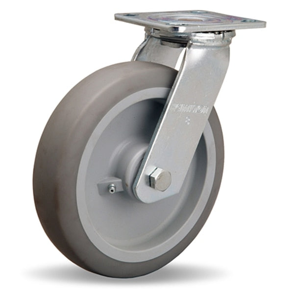 Standard Duty Swivel Caster, 8" x 2" Versa-Tech Gray Rubber (65A) on Polyolefin Wheel