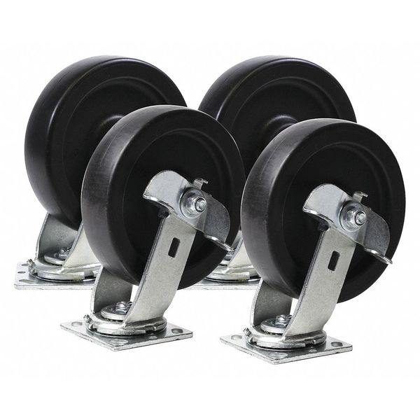 Plate Caster, Swivel, Poly, 8 in., 1200 lb.