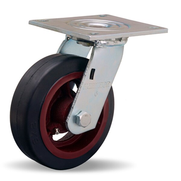 Heavy Service Swivel Caster, 6" x 2" Moldon Rubber Tired Wheel (70A), 3/4" Precison Tapered Bearings