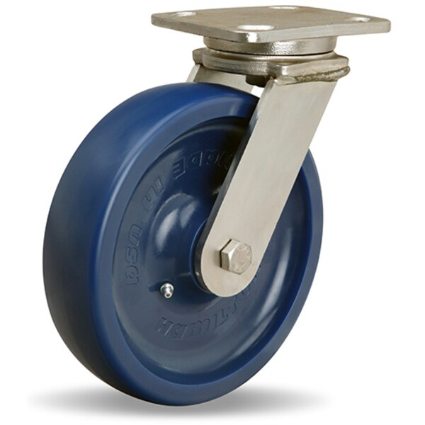 Stainless Steel Workhorse Swivel Caster, 8" x 2" Unilast, Solid Polyurethane (75D) Wheel