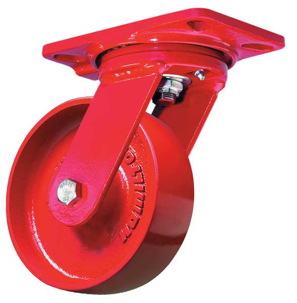 Plate Caster, Swivel, Cast Iron, 6 in, 1400 lb., Rd