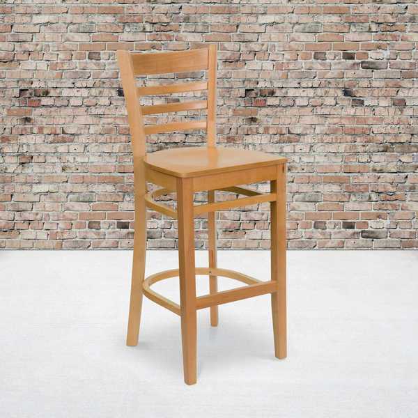 HERCULES Series Ladder Back Natural Wood Restaurant Barstool, PK2