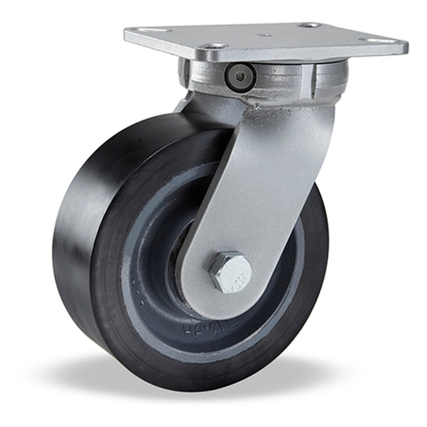 Maxi-Duty Swivel Caster, 16"X5" Moldon Rubber on Cast Iron Wheel