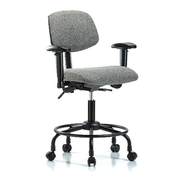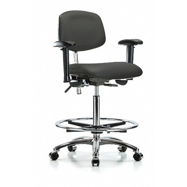 Hi Bench Chair, Vinyl, CF, Cast, Gry, CL100, Caster Type: Rolling