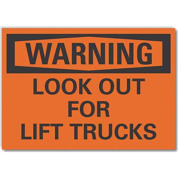 Lift Truck Traffic Warning Label, 10 in H, 14 in W, Polyester, Rectangle, LCU6-0102-ND_14X10SKU G9478966Categories Material HandlingDescription Lift Truck Traffic Warning Label, Horizontal Rectangle, Number of Printed Sides 1, English, Sign Format Traditional OSHA, Sign Legend Look Out For Lift Trucks, Sign Legend Background Color Orange, Sign Legend Style TextgraingerSKU: , mscSKU: , zoro_no: G9478966, mongo_id: 65bbe8f722d7a989a9927137