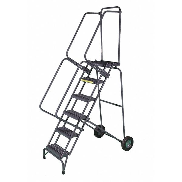 SKU G9930051Categories Material HandlingDescription Tilt and Roll Ladder, Material Steel, Platform Height 50 in, Handrails Included Yes, Handrail Height 30 in, Overall Height 80 in, Number of Steps 5, Assembled, Load Capacity 450 lb, Step Tread Perforated, Platform Depth 20 in, Platform Width 16 in, Bottom Width 20 in, Base Depth 53 in, Overall Width 20 in, Climbing Angle 59 Degrees , Step Depth 7 in, Step Width 16 in, Ladder Actuation None, Finish Powder Coated, Color Gray, Standards ANSI, OSHA, Includes 2-1/2 in Rubber Pads, Rear Exit NograingerSKU: 20Z375, mscSKU: , zoro_no: G9930051, mongo_id: 65bbe7183aaddbd5a9074a4f