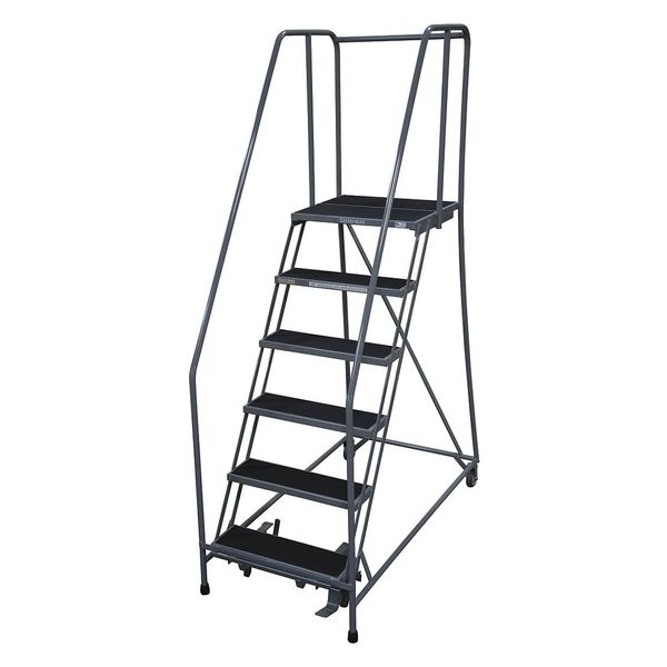$1,238.74 / eachWeb price90 in H Steel Rolling Ladder, 6 StepsSKU G0997501Categories Material HandlingDescription Rolling Ladder, Material Steel, Platform Height 60 in, Handrails Included Yes, Handrail Height 30 in, Overall Height 90 in, Number of Steps 6, Unassembled, Load Capacity 450 lb, Step Tread Perforated, Platform Depth 30 in, Platform Width 24 in, Bottom Width 30 in, Base Depth 96 in, Overall Width 30 in, Climbing Angle 59 Degrees , Step Depth 7 in, Step Width 24 in, Ladder Actuation Foot Activated Step Lock, Finish Powder Coated, Color Gray, Standards ANSI, OSHA, Rear Exit NograingerSKU: 21UW70, mscSKU: , zoro_no: G0997501, mongo_id: 65bbe82a22d7a989a98dd54f