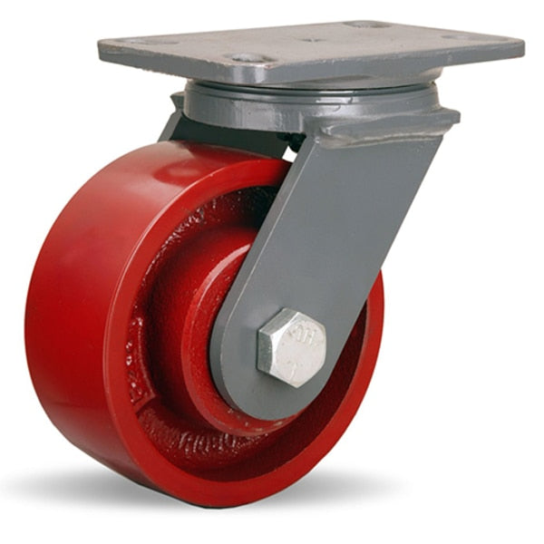 Workhorse Swivel Caster, 6" x 2" Ergo-Glide XT 1" thick Polyurethane (85A) Wheel