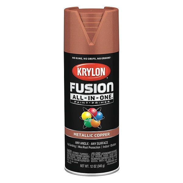 SKU G7597412Categories Paint and Body EquipmentDescription Metallic Spray Paint, Opacity 100 Percent, Coating Application General Purpose Spray Paint, Color Family Aluminum/Metallic, Compatible Surface Material Ceramic, Glass, Metal, Plastic, Wood, Resin Type Alkyd Enamel, Color Copper, Container Size 16 oz, Coverage Area 25 sq ft, Base Type Solvent, Dry Time 25 min, Use Location Exterior, Interior, Sub Brand Fusion, Container Type Aerosol Can, Dry Time Tack Free 2 hr, Dry Time to Recoat 2 hr to 48 hr, Flammability FlammablegraingerSKU: , mscSKU: 98494685, zoro_no: G7597412, mongo_id: 65bbea1722d7a989a9995aaf