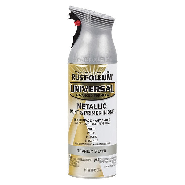 SKU G1808899Categories Paint and Body EquipmentDescription Spray Paint, Opacity 0 Percent, Maximum Dry Film Thickness 2 mil, Coating Application General Purpose Spray Paint, Color Family Aluminum/Metallic, Compatible Surface Material Aluminum, Metal, Plastic, Wicker, Wood, Sheen Flat, Resin Type Modified Alkyd, Color Titanium Silver, Container Size 11 oz, Coverage Area 15 sq ft, Base Type Solvent, Dry Time 1 hr, Use Location Exterior, Interior, Sub Brand Universal, Container Type Aerosol Can, Dry Time Tack Free 30 mingraingerSKU: 40PM59, mscSKU: , zoro_no: G1808899, mongo_id: 65bbe9c522d7a989a9979151