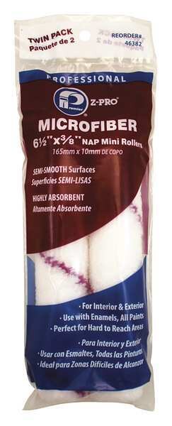$6.99 / eachWeb price6-1/2" Mini Paint Roller Cover, 3/8" Nap, Microfiber, 2 PKSKU G9013821Categories Paint and Body EquipmentDescription Mini Paint Rollers, Cover Type Standard, Surface Texture Semi-Smooth, Compatible Roller Frame Style Wire, 6 1/2 in Overall Length, 3/8 in Nap Size, Surface Material Drywall, Paint Type All Paints, Enamels, Core Diameter 5/8 in, Cover Material Microfiber, Core Material Polypropylene, Package Quantity 2graingerSKU: 34AN80, mscSKU: 42085530, zoro_no: G9013821, mongo_id: 65bbe9cb22d7a989a9979c08