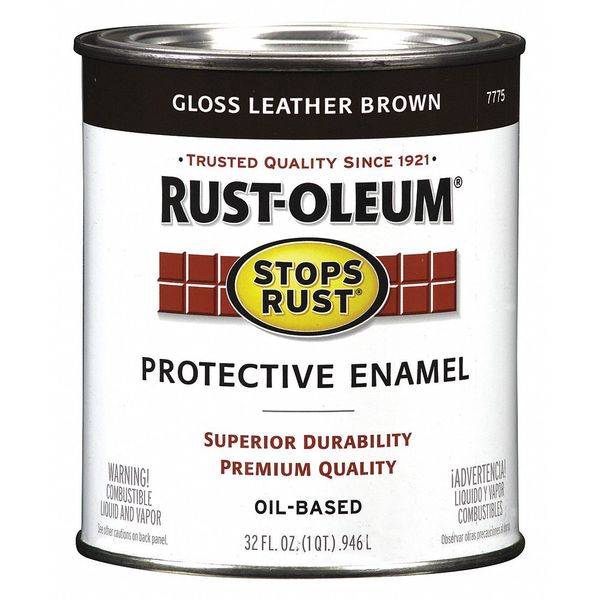 SKU G4151555Categories Paint and Body EquipmentDescription Enamel Paint, For Use On Surface Material Metal, Wood, Paint Base Type Oil, Paint Color Family Browns, Leather Brown, Finish Gloss, Size 1 qt, Coverage 50 to 90 sq ft/gal, VOC Content Less than 485g/L, Dry Time Recoat 24 hr, Paint Sub-Brand Stops Rust, Paint Cleanup Mineral Spirits, Dry Time 5 to 9 hr, Min. Application Temp. 50 Degrees to 90 Degrees F, Application Method Brush, Roll, Spray, Features Corrosion Resistant, DurablegraingerSKU: 39DP19, mscSKU: , zoro_no: G4151555, mongo_id: 65bbe9cb22d7a989a9979356