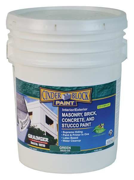 SKU G5872431Categories Paint and Body EquipmentDescription Exterior Paint, For Use On Surface Material Brick, Concrete, Drywall, Masonry, Metal, Plastic, Stucco, Wood, Paint Base Type Water, Paint Color Family Greens, Green, Finish Flat, Size 5 gal, Coverage 200 to 300 sq ft/gal, VOC Content 18g/L, Dry Time Recoat 4 hr, Dry Time 30 min, Application Method Brush, Roll, SpraygraingerSKU: 19NY80, mscSKU: , zoro_no: G5872431, mongo_id: 65bbe9cb22d7a989a9979355