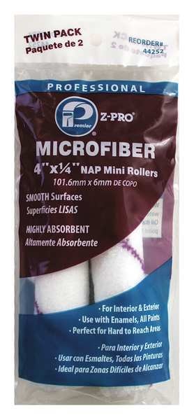 SKU G9013776Categories Paint and Body EquipmentDescription Microfiber Roller, Cover Type Mini, Surface Texture Smooth, Compatible Roller Frame Style Wire, 4 in Overall Length, 1/4 in Nap Size, Surface Material Drywall, Paint Type All Paints, Enamels, Core Diameter 5/8 in, Cover Material Microfiber, Core Material Polypropylene, Package Quantity 2graingerSKU: 34AN75, mscSKU: 38684544, zoro_no: G9013776, mongo_id: 65bbe9a422d7a989a996b65c