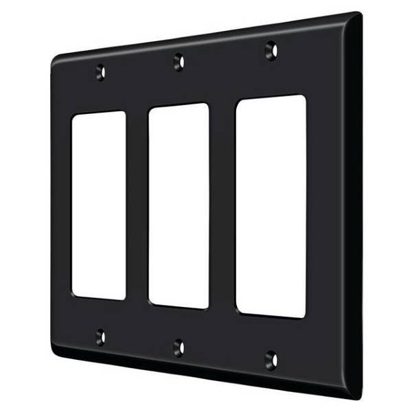 Triple Rocker Switch Plate, Number of Gangs: 3 Solid Brass, Paint Black Finish