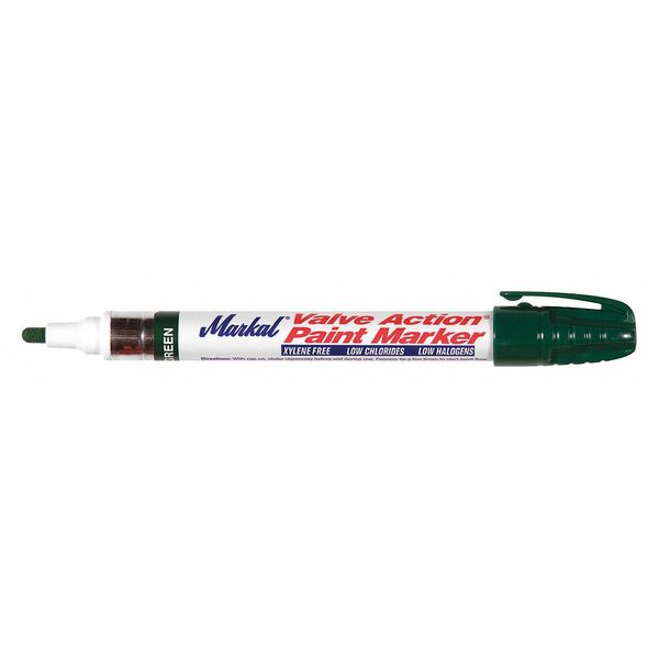 $6.61 / eachWeb pricePermanent Valve Action Paint Marker, Medium Tip, Green Color Family, PaintSKU G0226353Categories Paint and Body EquipmentDescription Paint Marker, Actuation Type Valve, Compatible Surfaces Cloth, Fabrics, Glass, Iron, Plastic, Rubber, Steel, Dry Time 30 sec, GE Nuclear and Aircraft Engine Specification Compliance Not Applicable, Housing Attachment Style Clip, Housing Material Metal, Includes Not Applicable, Marking Tip Shape Bullet, Maximum Application Temperature 150 Degrees F, Maximum Performance Temperature 150 Degrees F, MIL Spec STD-2041D Compliance No, Minimum Application Temperature -50 Degrees FgraingerSKU: 2WMH4, mscSKU: 00124487, zoro_no: G0226353, mongo_id: 65bbe94a22d7a989a99479df
