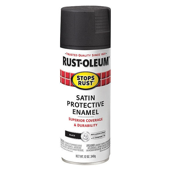 SKU G9489225Categories Paint and Body EquipmentDescription Spray Paint, Opacity 0 Percent, Maximum Dry Film Thickness 2 mil, Coating Application General Purpose Spray Paint, Color Family Black, Compatible Surface Material Concrete, Masonry, Metal, Wood, Sheen Satin, Finish Texture Smooth, Resin Type Modified Alkyd, Color Black, Container Size 12 oz, Coverage Area 10 sq ft, Base Type Solvent, Dry Time 9 hr, Use Location Exterior, Interior, Sub Brand Stops Rust, Container Type Aerosol Can, Dry Time Tack Free 4 hrgraingerSKU: 35YJ86, mscSKU: , zoro_no: G9489225, mongo_id: 65bbe8c222d7a989a99147ef