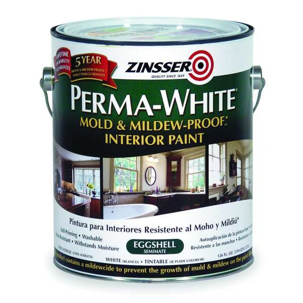SKU G3184587Categories Paint and Body EquipmentDescription Interior Paint, For Use On Surface Material Ceramic, Concrete, Drywall, Metal, Plaster, Plastic, Stucco, Wood, Paint Base Type Water, Paint Color Family Whites, Color White, Finish Eggshell, Size 1 gal, Coverage 300 to 400 sq ft/gal, VOC Content Less Than 50g/L, Dry Time Recoat 2 hr, Dry Time 2 hr, Application Method Brush, Roll, Spray, Features Mold and Mildew Proof, Standards ASTM D5590 and ASTM D3273graingerSKU: 4HFE3, mscSKU: , zoro_no: G3184587, mongo_id: 65bbe8c222d7a989a9914c82