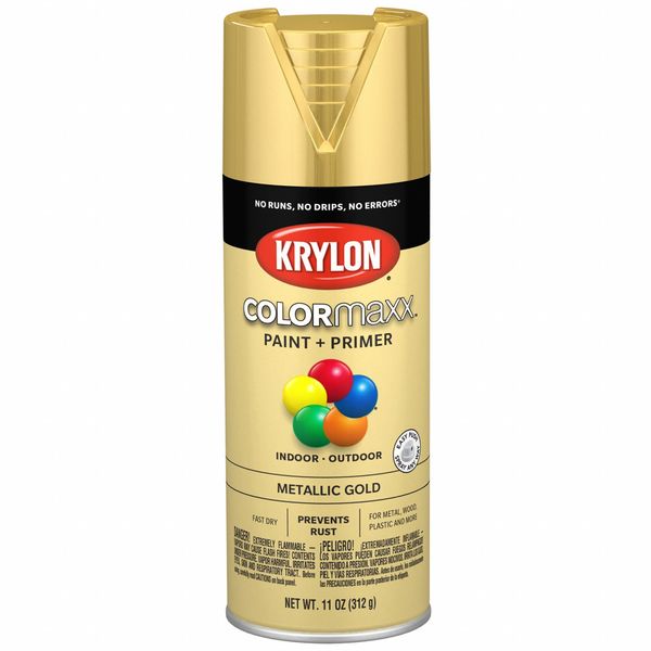 SKU G707200151Categories Paint and Body EquipmentDescription Spray Paint, Opacity 100 Percent, Coating Application Rust Preventative Spray Paint, Color Family Metallic, Compatible Surface Material Fabric, Glass, Metal, Plastic, Wicker, Wood, Sheen Not Applicable, Finish Texture No Texture, Resin Type Acrylic, Color Metallic Gold, Container Size 11 oz, Coverage Area 20 to 25 sq ft, Base Type Solvent, Dry Time 10 minute, Use Location Exterior, Interior, Sub Brand COLORmaxx, Dry Time Tack Free 1 hr, Dry Time to Recoat 1 hr$9.74 / eachWeb price