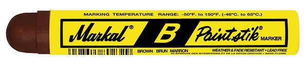 $24.36 / eachWeb priceSolid Paint Marker, Large Tip, Brown Color FamilySKU G5377337Categories Paint and Body EquipmentDescription Paint Crayon, Actuation Type Not Applicable, Casing Material Wood Holder, Dry Time 12 to 24 hr, Glow-in-the-Dark No, Grade Scanner Compatibility Not Applicable, Hardness Not Applicable, Indoor/Outdoor Usage Indoor/Outdoor, Marker Size Group Standard, Marking Tip Shape Round, Maximum Application Temperature 150 Degrees F, Minimum Application Temperature -50 Degrees F, Overall Length 4 3/4 in, Pigment Color Brown, Pigment Material Paint, Pigment Maximum Surface Temperature Not ApplicablegraingerSKU: 23YT94, mscSKU: 67525279, zoro_no: G5377337, mongo_id: 65bbe7763aaddbd5a90973a3