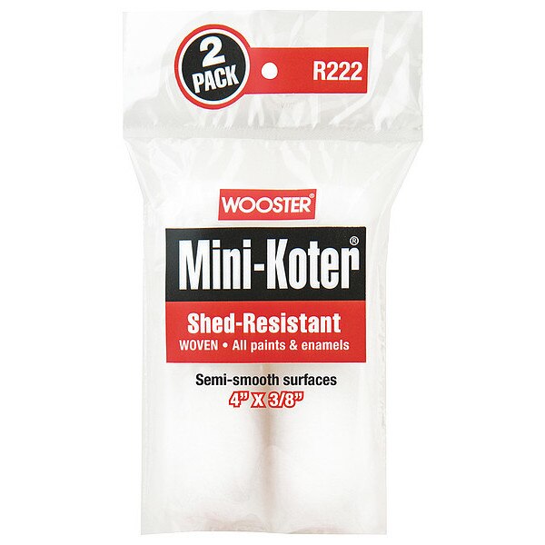 SKU G404392814Categories Paint and Body EquipmentDescription Paint Roller Cover, Cover Type Mini, Surface Texture Semi-Smooth, Smooth, Compatible Roller Frame Style Cage, 4 in Overall Length, 3/8 in Nap Size, Surface Material Drywall, Wood, Paint Type All Paints, Core Diameter 1/4 in, Cover Material Woven Fabric, Package Quantity 10graingerSKU: 793J06, mscSKU: , zoro_no: G404392814, mongo_id: 65bbe7a79a749db82274ce47