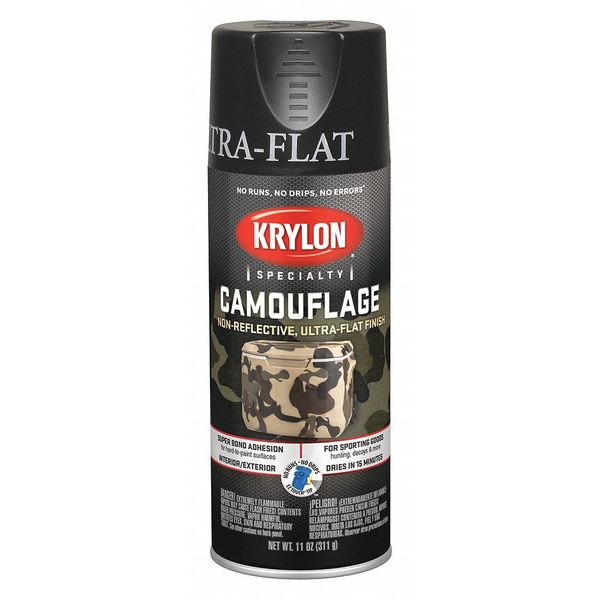 SKU G1922897Categories Paint and Body EquipmentDescription Spray Paint, Opacity 100 Percent, Coating Application General Purpose Spray Paint, Color Family Black, Compatible Surface Material Metal, Plastic, Wood, Sheen Ultra-Flat, Finish Texture Smooth, Resin Type Modified Alkyd, Color Black, Container Size 16 oz, Coverage Area 25 sq ft, Base Type Solvent, Dry Time 15 min, Use Location Exterior, Interior, Sub Brand Camouflage, Container Type Aerosol Can, Dry Time Tack Free 1 hr, Dry Time to Recoat 24 hr, Flammability FlammablegraingerSKU: 54TJ47, mscSKU: , zoro_no: G1922897, mongo_id: 65bbe7519a749db82272f933