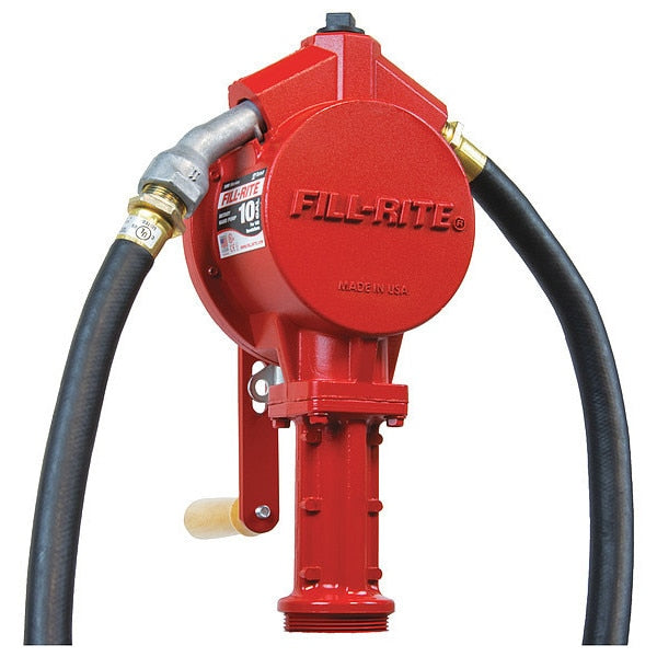 $312.49 / eachWeb priceHand Operated Drum Pump, 3/4 in FNPT, Hose & Nozzle, Bung, Rotary, 10 gal per 100 revolutionsSKU G2991834Categories PumpsDescription Hand Operated Drum Pump, Max. Outlet Pressure 50 psi, Pump Connection OD 2 1/8 in, Spout Connection Size 3/4 in, Self-Priming Yes, Metered No, Hose Length 8 ft, Includes Discharge Hose Yes, Features Rotary Action, Seal Material Buna-N, For Use With Gasoline, Diesel, Oils up to SAE 40, Antifreeze and Kerosene, Adapter Connection Type MNPT, Discharge Connection Type FNPT, For Container Type Drum, Hose Cover Material Neoprene, Includes Bung Adapter Yes, Includes Nozzle Yes, Includes Spout NograingerSKU: 1P893, mscSKU: , zoro_no: G2991834, mongo_id: 65bbe8d822d7a989a991b640