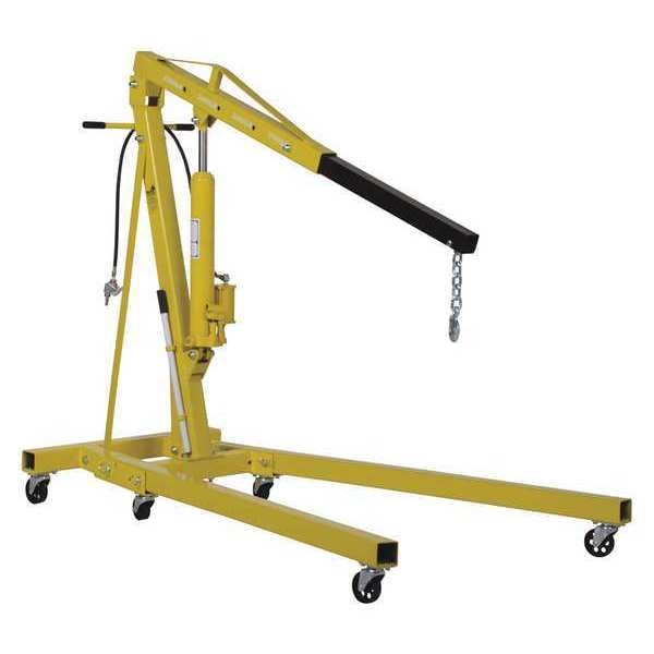 SKU G5582039Categories Lifting and Hydraulics , PumpsDescription Engine Crane, Frame Material Steel, Load Capacity 2 ton, Number of Boom Positions 4, Boom Capacity (First Position) 2 ton, Boom Capacity (Second Position) 3,000 lb, Boom Capacity (Third Position) 1 ton, Boom Capacity (Fourth Position) 0.5 ton, Color Yellow, Caster Type Swivel, Chain Length 11 in, Crane Type Engine Crane, Features Adjustable Boom, Folding Legs, Swivel Hook, Lift Actuation Pneumatic, Overall Height 58 in, Overall Length 72 in, Overall Width 43 ingraingerSKU: 44RA78, mscSKU: , zoro_no: G5582039, mongo_id: 65bbe6ac3aaddbd5a90467e0