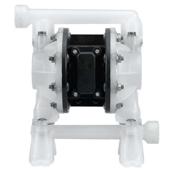 SKU G1456953Categories PumpsDescription Double Diaphragm Pump, Air Consumption (Maximum) 20 scfm, Air Intake Connection Size 1/4 in, Air Intake Connection Type NPT, Check Seat Material Polypropylene, Diaphragm Material PTFE, Feet of Head (Maximum) 230 ft, Flow Rate (Maximum) 16.3 gpm, Manifold Connection Single Port, Media Discharge Connection Size 3/4 in, Media Discharge Connection Type NPTF, Media Discharge Location Side, Media Intake Connection Size 3/4 in, Media Intake Connection Type NPT, Media Intake Location SidegraingerSKU: 2UV60, mscSKU: 60600194, zoro_no: G1456953, mongo_id: 65bbe6603aaddbd5a9026b71