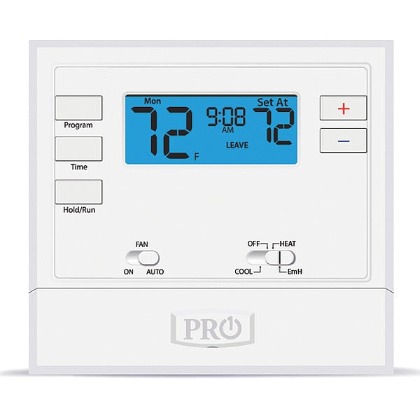 $124.24 / eachWeb priceLow Voltage Thermostat, 7 or 5-1-1 Programs, 2 Heat Pump or 1 Conventional H 1 C, Hardwired/BatterySKU G4560729Categories PumpsDescription Low Voltage Thermostat, Stages Heat 2 Heat Pump or 1 Conventional, Stages Cool 1, Temp. Settings per Day 4, 2, Programs per Week 7 or 5-1-1, Terminal Designations B, C, G, O, R, W/E, W2, Y, WiFi Capability No, System Switching Heat-Off-Cool, Fan Switching Auto-On, Display Size 2 sq in, Display Type Digital, Display Color Blue, Key Pad Lockout Yes, Programmable Fan No, Automatic Changeover No, Humidification Control No, Dehumidification Control No, Remote Sensing Capability NograingerSKU: null, mscSKU: null, zoro_no: G4560729, mongo_id: 65bbe6283aaddbd5a900fa52