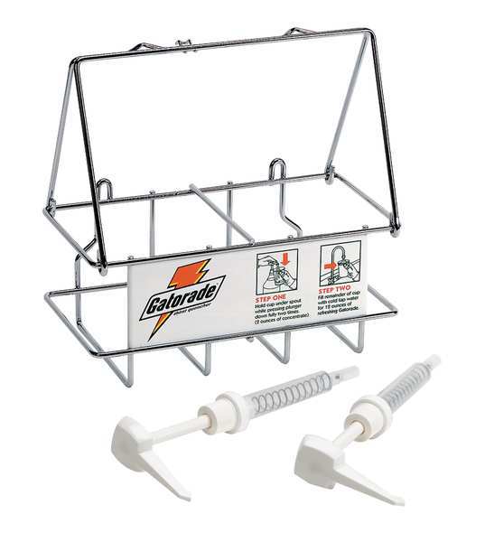 Wire Rack Dispenser, Two PumpsSKU G0643824Categories PumpsDescription Dispenser Rack, Cooler Rack Holds (2) 1 gal Liquid Concentrate Drink Mix, Height 18 in, Length 13 1/2 in, Width 13 in, Material Metal, Color Silver, Includes 2 PumpsgraingerSKU: , mscSKU: 03846482, zoro_no: G0643824, mongo_id: 65bbe7d53aaddbd5a90bbd4f