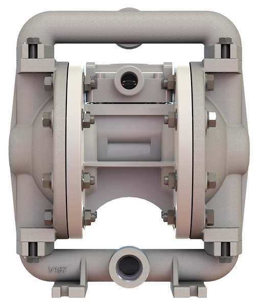 SKU G2753956Categories PumpsDescription Double Diaphragm Pump, Air Consumption (Maximum) 100 scfm, Air Intake Connection Size 1/2 in, Air Intake Connection Type Flange, Check Seat Material Polypropylene, Diaphragm Material Santoprene, Feet of Head (Maximum) 289 ft, Flow Rate (Maximum) 126 gpm, Manifold Connection Single Port, Media Discharge Connection Size 1 1/2 in, Media Discharge Connection Type Flange, Media Discharge Location Side, Media Intake Connection Size 1 1/2 in, Media Intake Connection Type FlangegraingerSKU: 6CCP0, mscSKU: , zoro_no: G2753956, mongo_id: 65bbe8149a749db822772fa7