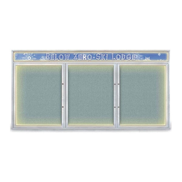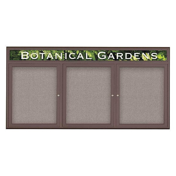 Corkboard, Triple Door, Radius Frame, Header, 72x36", Bronze/Pearl