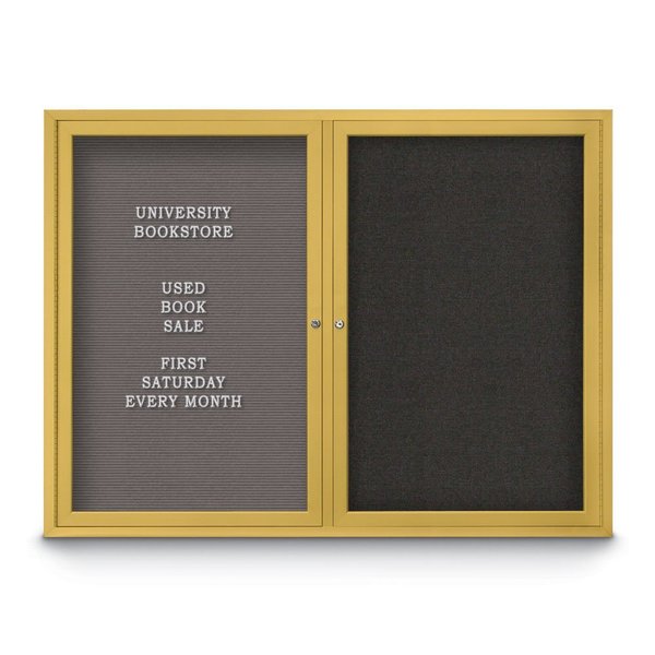 Corkboard, Single Door, Radius Frame, 48x48", Bronze/Buff