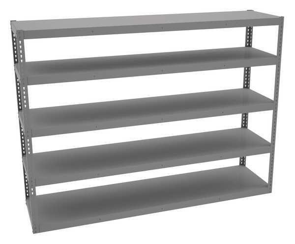 SKU G3455606Categories Raw MaterialsDescription Boltless Shelving, Channel, Overall Depth 24 in, Overall Height 72 in, Overall Width 96 in, Shelf Gauge 14 ga, Shelf Adjustment Increments 1 1/2 in, Steel, Steel, Steel, (4) Posts, (5) Deck Levels, Includes Decking Yes, 2,600 lb, Whole Unit Load Capacity 13,000 lb, Standalone, Open, SCS Indoor Advantage(R) Certified, Post Gauge 14 ga, Number of Shelves 5, Maximum Post Load Capacity 13,000 lb with Beam Evenly Spaced at 24 in, Powder Coated, Extra-Heavy-Duty, GraygraingerSKU: 39FM75, mscSKU: , zoro_no: G3455606, mongo_id: 65bbee41526e052139afd791