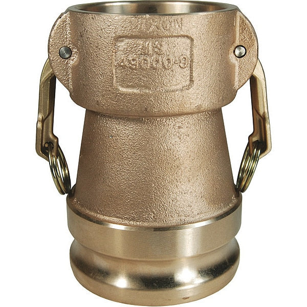 Cam and Groove Coupling, 2", 3", BrassSKU G0200535Categories Raw MaterialsDescription Cam and Groove Coupling, Socket x Plug, Body Material Brass, Type DA, Coupling Size 3 in Socket x 2 in Plug, Female Coupler x Male Adapter, Max. Working Pressure @ 70 F 125 psi, Plug Outside Dia. 2 15/32 in, Socket Inside Diameter 3 in, Gasket Material Nitrile, Overall Length 5 1/2 in, Includes Locking Arm No, Plug Length 1 7/8 in$311.24 / eachWeb price -