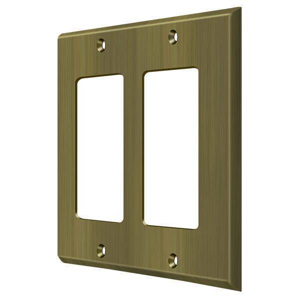 Double Rocker Switch Plate, Number of Gangs: 2 Solid Brass, Antique Brass Finish