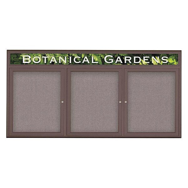 Corkboard, Triple Door, Radius Frame, Header, 72x36", Bronze/Surf