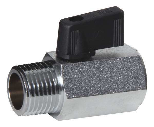 1/8" FNPT x MNPT Brass Mini Ball Valve InlineSKU G2830992Categories Raw MaterialsDescription Mini Ball Valve, Body Material Brass, Body Style Inline, 1-Piece, Pipe Size 1/8 in, Connection Type FNPT x MNPT, Standard Port, Max. Pressure 450 psi CWP, Temp. Range -40 Degrees to 350 Degrees F, Ball Material Chrome Plated Brass, Seat Material PTFE, Stem Type Blowout Proof, Handle Type Includes Wedge, Tee and Lever, Handle Material Nylon, Stem Material Brass$13.34 / eachWeb price -