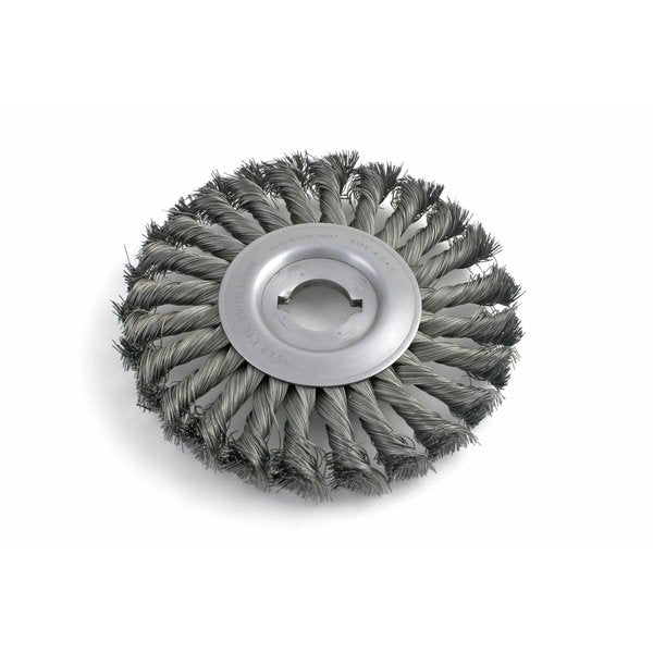 B464, 8" Diameter Knotted Wheel Brush, .016 Carbon Steel, 1" Arbor Hole With Keyway