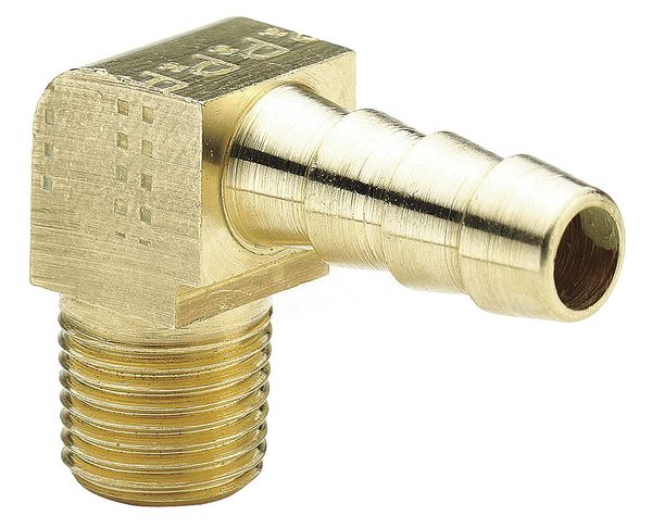 SKU G103888113Categories Raw MaterialsDescription MINI BARB FITTING, Fitting Side A Connection Type MNPT, Fitting Side B Connection Type Barbed, Fitting Side A Pipe Size 1/8 in, Fitting Side B Tube Inner Diameter 1/4 in, Barb Style Beaded, Fitting Material Brass, Material Grade CA360, Finish/Coating Nickel-Plated, Overall Length 11/16 in, Specific Fitting Shape 90 Degrees Elbow Adapter, Application Air, Fuels, Non-Potable Water, Maximum Operating Pressure 120 psi @ 72 Degrees F, Maximum Operating Temperature 230 Degrees F$4.36 / eachWeb price