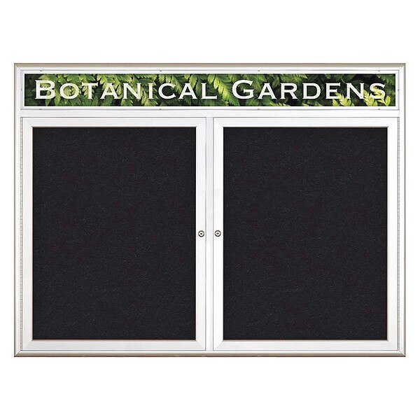 Corkboard, Double Door, Radius Frame, Header, 48x36", Satin/Black Rubber