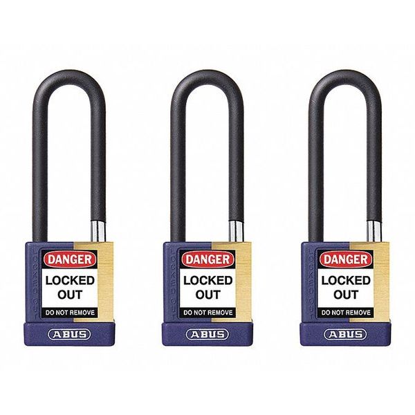 Keyed Padlock, Open, Rectangular Brass Body, Plastic Encased Hardened Steel Shackle, 3/4 in WSKU G4434503Categories Raw MaterialsDescription Keyed Padlock, Body Color Blue, Body Height 1 3/4 in, Body Material Brass, Body Thickness 3/4 in, Body Width 2 in, Header None/No Header, Key Type Keyed Alike, Non-Removable Key No, Shackle Diameter 1/4 in, Shackle Height 1 1/2 in, Shackle Material Hardened Steel, Shackle Type Open, Width Across Shackle 3/4 in, Body Material Coating Powder Coated, Body Shape Rectangular, Control Key Registration Required Yes, Includes (2) KeysgraingerSKU: 459T40, mscSKU: , zoro_no: G4434503, mongo_id: 65bbe9bf22d7a989a9974aad